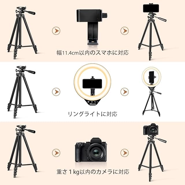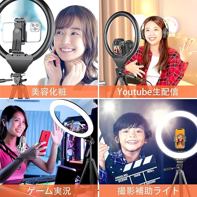 商品名:UBeesize LEDリングライト 10インチ スマホ三脚 自撮りライト ビデオライト タッチパネル操作式 zoom会議/ビデオ撮影/化粧/ブログ/ライブ配信に対応 女優ライト 127cm三脚 撮影 照明 ビデオライト