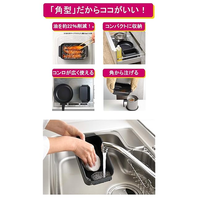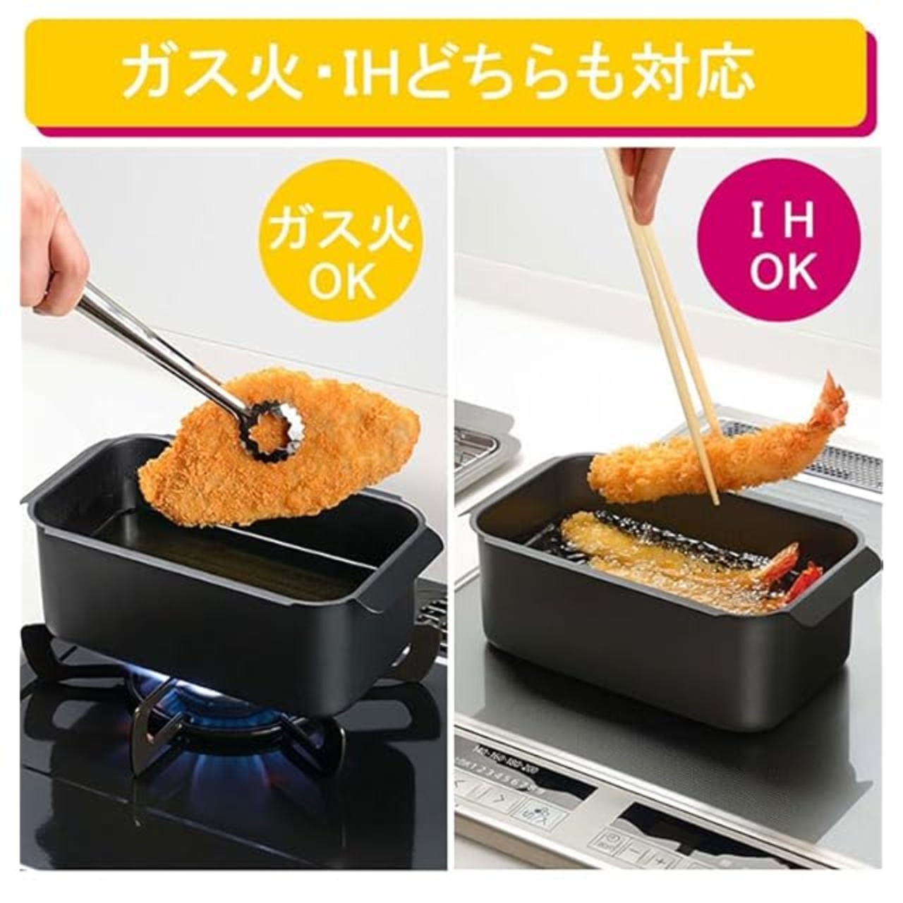 NEIGHBOR CLOWN IH&ガス火対応 串揚げ鍋 天ぷら鍋 角型 24.5cm 鉄製 安心 IH対応 フライヤー あげもの鍋 卓上 汚れを落としやすい ブラック 揚げ鍋 RCステッカー付 rcws1