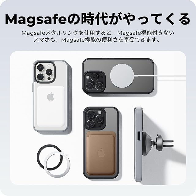 【MagSafe対応にアップグレード】独自の金属リングを使用して、お使いの通常のスマホケースを瞬時にMagSafe対応に変更できます。これにより、磁気ワイヤレス充電が簡単かつ迅速に行えます。