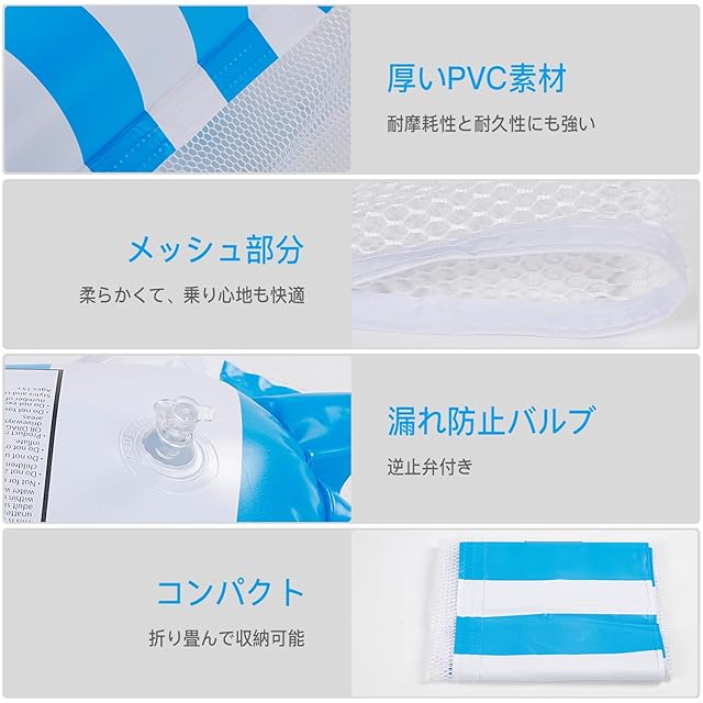 【多用途&様々な場面で活躍】ポンプで空気を入れるだけで、簡単に使えます。プール、ビーチ、海、レジャー、浜水泳など、ほかのアウトドアにもオススメです。使い方によって、ハンモック、フロート、チェアなど、またはサドルにも変えられます。大きいサイズなので、水の上でのんびり浮かびながら、リラックスもできます。