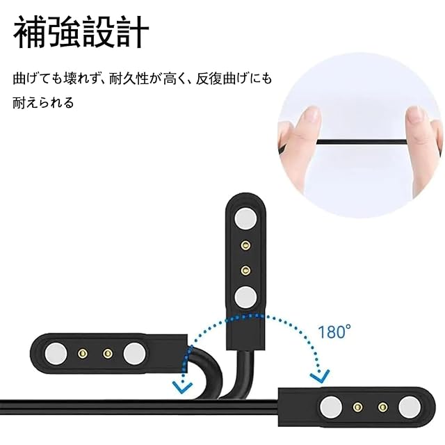 【特別注意】:※本製品はすべてのモデルのスマートウォッチには適していないことに注意してください。購入前に、商品詳細図の電極と磁極の極性接続の概略図をよく見てください。受け取った製品とデバイスの磁極電極に拒絶反応がある場合は、デバイスに損害を与えないように強制的に接続しないでください。磁気極不整合の問題が発生した場合は、すぐにお問い合わせください。私たちはあなたに満足できるソリューションを提供します。 <br><br><br>【適用機種】:スマートウォッチ充電用ケーブルです。YAMAY SW021、SW023、Willful SW025(ID205S)、LETSCOM ID205L、ID206、ID216に対応します。2ピン間の距離は2.84mmです。ご購入の際は、商品の磁極をご確認の上、ご購入ください。<br><br><br>【操作簡単】:操作がなく、付属のUSBコードを電源に差し込みだけで、コネクタに置いて充電できます。電源アダプター、カーアダプター、ラップトップなどと接続でき、これらの充電方法により、高効率で安定性の高い充電体験を提供できます。<br><br><br>【磁気充電】:マグネット充電は、充電エリアをスマートウォッチに容易に合わせ、充電効率と速度を確保し、簡単で便利な充電と安定した保持を提供することができる。<br><br><br>【便利性】:携帯性、耐久性、柔軟性を備えたコードは日常のどのような場合においても対応し、接続が可能。自宅、オフィス、車内、旅行中など、予備のケーブルや交換用として理想的です。<br><br><br>【商品】:商品を受け取った後、初期に不良、破損などがあれば無料で交換、返品、返金することができる。使用中に発生した問題については、お問い合わせください。24時間以内にお返事します。