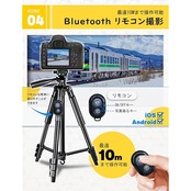 商品名:カメラ三脚 三脚 ビデオカメラ三脚 最大長158センチ 3WAY雲台 5段階伸縮Bluetoothリモコン付き三脚 スマートフォン スマホ 三脚 軽量 ミニ三脚 収納袋付き 水準器付き 持ち運び便利 iPad/Android/カメラ/一眼レフなど対応 自撮りや写真と生ライブ配信なども適用 日本語取扱書付き