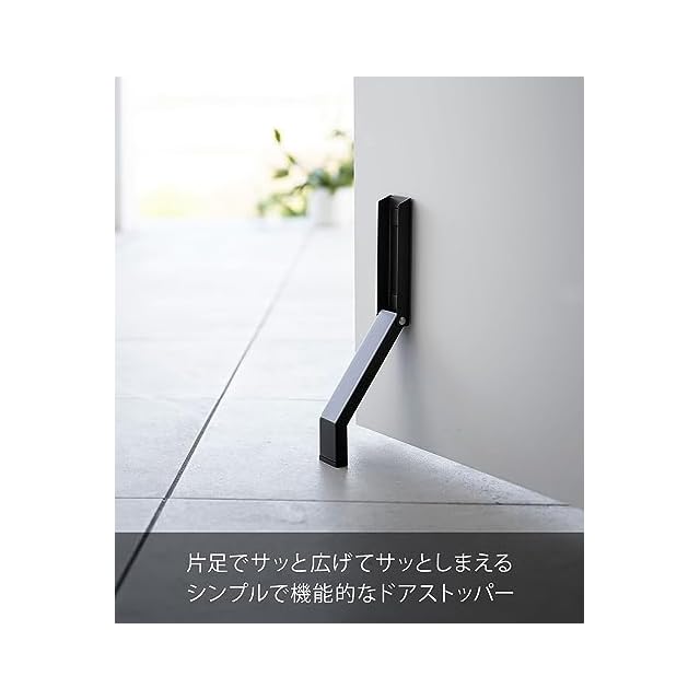 商品名:山崎実業(Yamazaki) マグネット 折り畳みドアストッパー ブラック (使用時)約W4.5×D7×H28cm タワー tower 強力マグネット 簡単取付 玄関ドア 片足で操作可能 3721