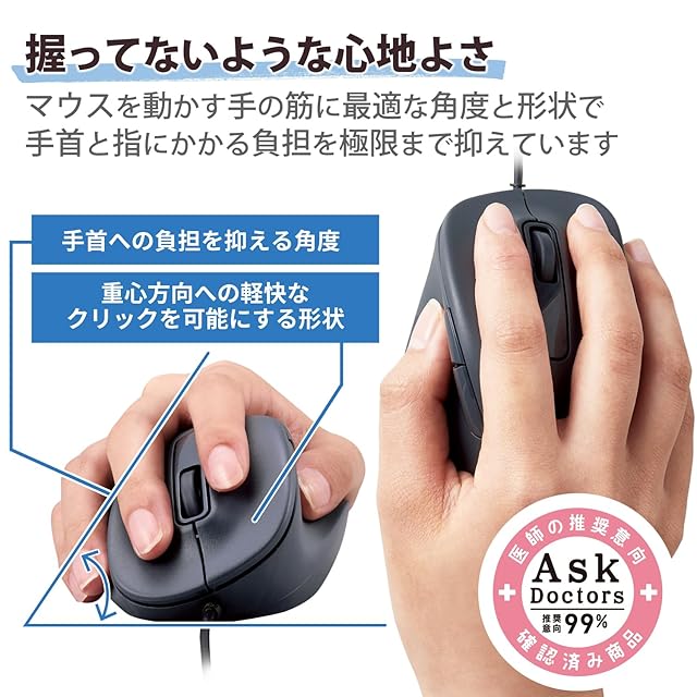 医師との共同開発により究極の握り心地を実現した5ボタンマウス“EX-G"。