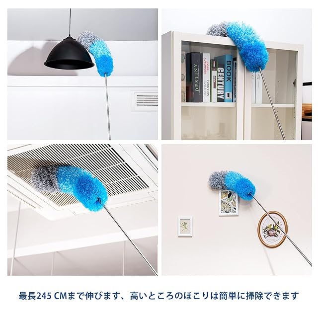 【いいデザイン】ほこりとりポールの長さは変えられますので、都合の良い長さに調節してお使いいただけます。伸縮可能なはたき、最長245cm、届かない場所にも届きます。 ほこりとりヘッド部分は360°自由に折り曲げることができます。