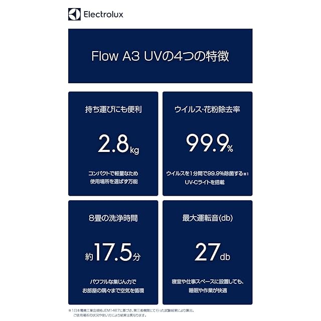 商品名:【静音×空気清浄】 エレクトロラックス Flow A3 UV 空気清浄機 フィルター用UV-Cライト搭載 睡眠モード 小型 脱臭 15畳 ピンク FA31-203PK