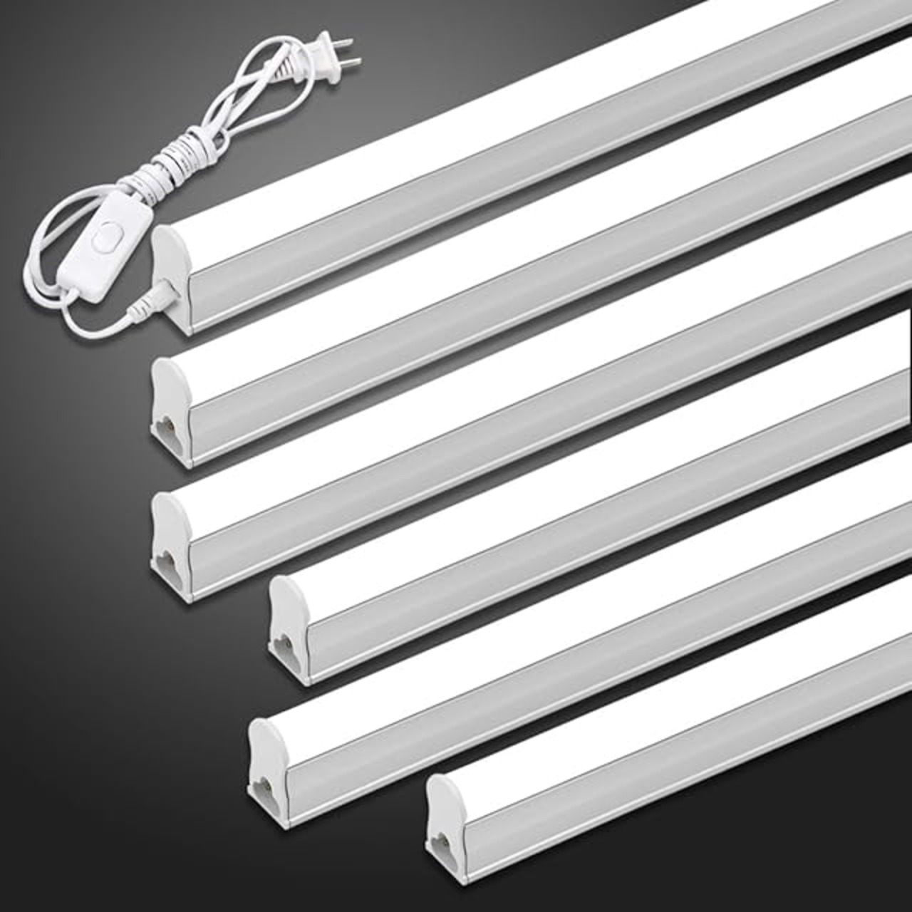 LED蛍光灯 20W形 器具一体型LED蛍光灯 T5 LED 直管 9W led 6000K-6500K 昼光色 天井照明 バーライト ベースライト 60cm 蛍光灯器具セット led照明 工事不要 連結コード付属 スイッチ付き【6本入り】 (20W形/昼光色/6本)