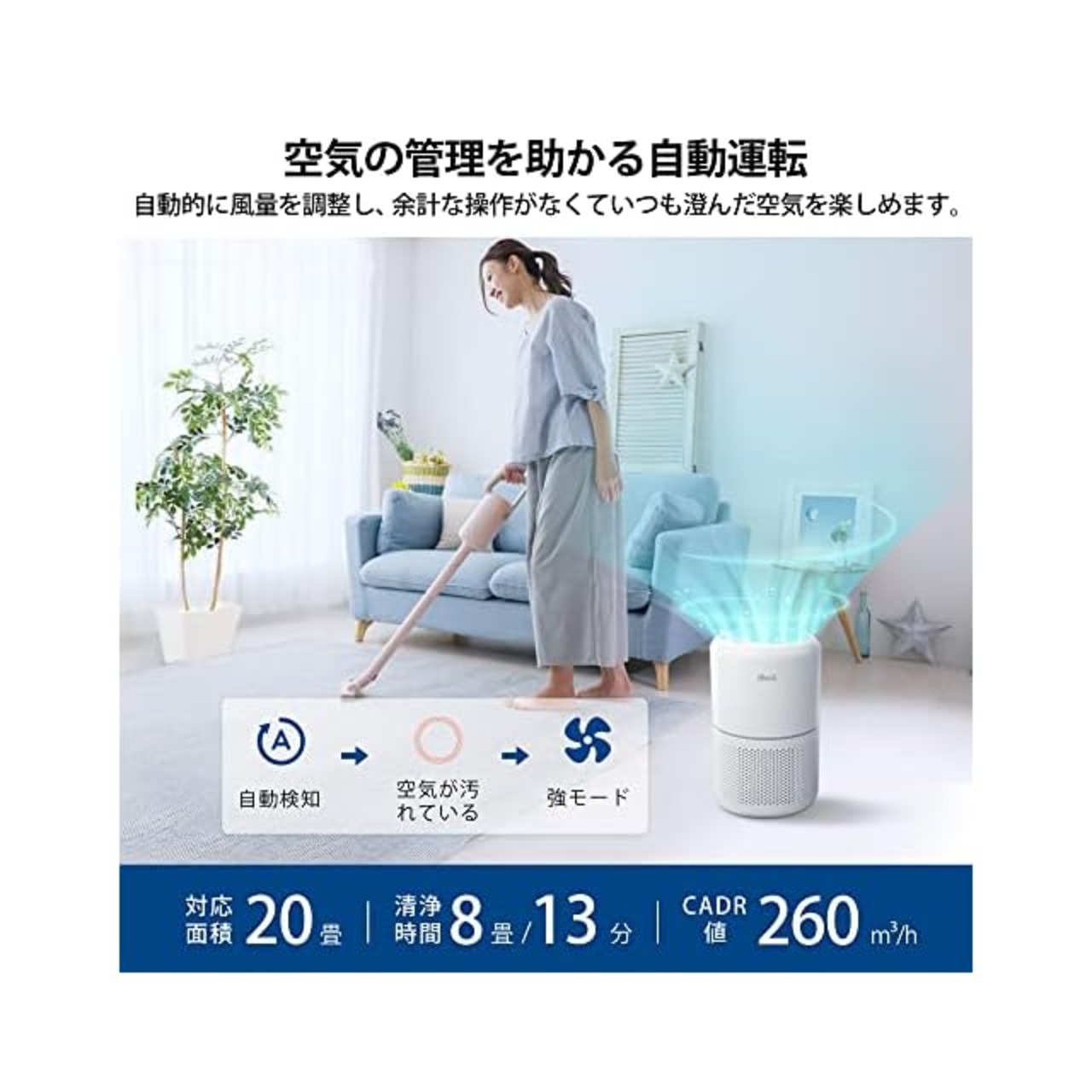 【空気質可視化、利便性を極めたコアシリーズ】空気管理をより簡素化するため、該当製品に高精度ほこりセンサー、空気の質の表示機能、自動モード、花粉モード、スリープモードを搭載されます。空気の汚れをリアルタイムに検知し、空気がキレイになっていく様子も目で見てわかります。また、遠距離や手が不便な時、アレクサとグーグルのマートスピーカーとの連携により、音声で空気清浄機をコントロールできます。