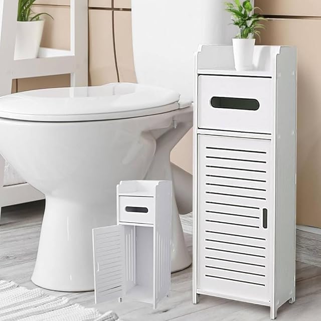 Bonarca トイレ 収納ラック 【横幅20cmのスリム&大容量】 スリム 棚 ラック 収納 木製 白 トイレラック 扉付き ホワイト 清潔感 おしゃれ トイレットペーパー サニタリー 掃除用具 幅20㎝ 高さ60cm