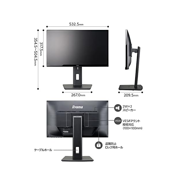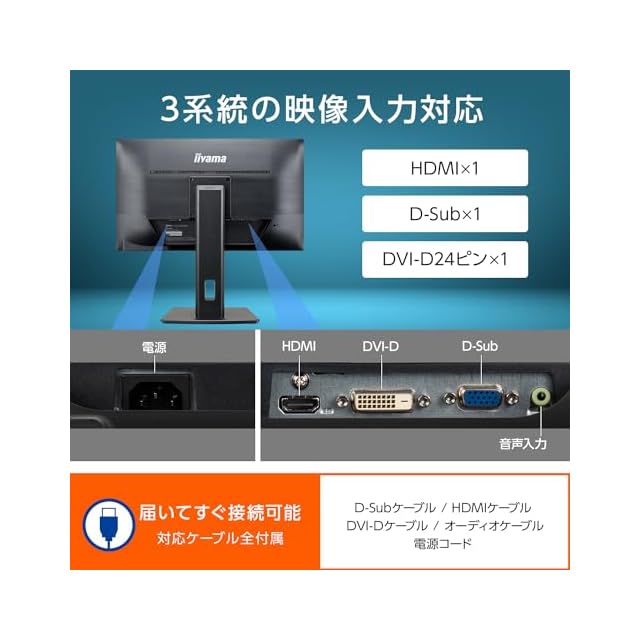 商品名:iiyama モニター ディスプレイ 23インチ フルHD IPS 高さ調整 角度調整 縦回転 HDMI D-sub DVI-D 全ケーブル付 3年 国内サポート XUB2390HS-B5A