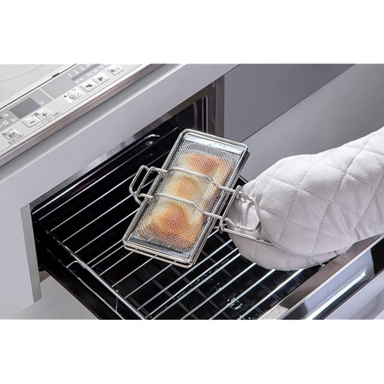 商品名:高木金属工業 takagi metal ホットサンドメーカー オーブントースター用 グリル用 両面焼き対応 網 簡単 レシピ付き ホットサンドトースター 網 ホットサンド1枚用 日本製 ステンレス鋼 ハーフ GK-HSH