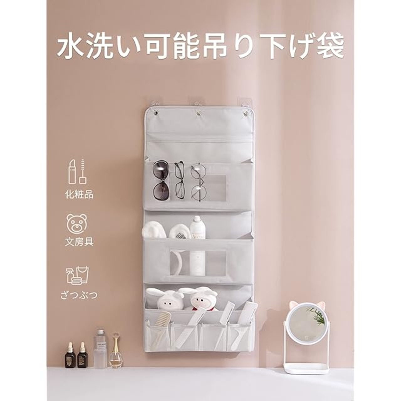 商品名:ALLMIRA ウォールポケット 壁掛け 収納 大容量 シンプル クローゼット 玄関 洗面所 洗えます (3層 グレー) (2層 ベージュ) (三層 グレー)