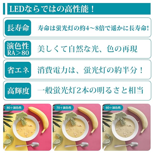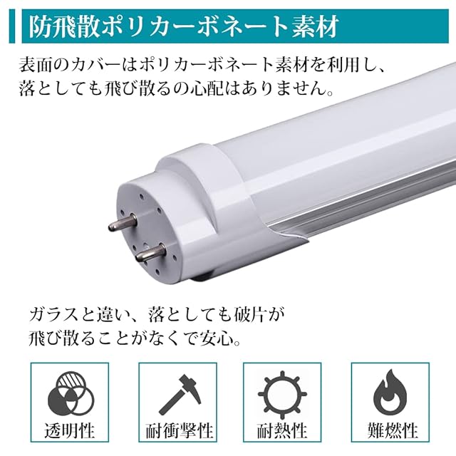 「長寿命両側給電LEDランプ」寿命は蛍光灯の約4~8倍で遥かに長寿命!交換する頻度が少なくて済みます!LEDの消費電力はかなり低いです,電気代が1/2~1/3に!※お使いの照明は2灯式の場合は2本同じものをご使用してください。2灯式の照明器具の場合、従来の蛍光灯と混ぜて使用しないでください。