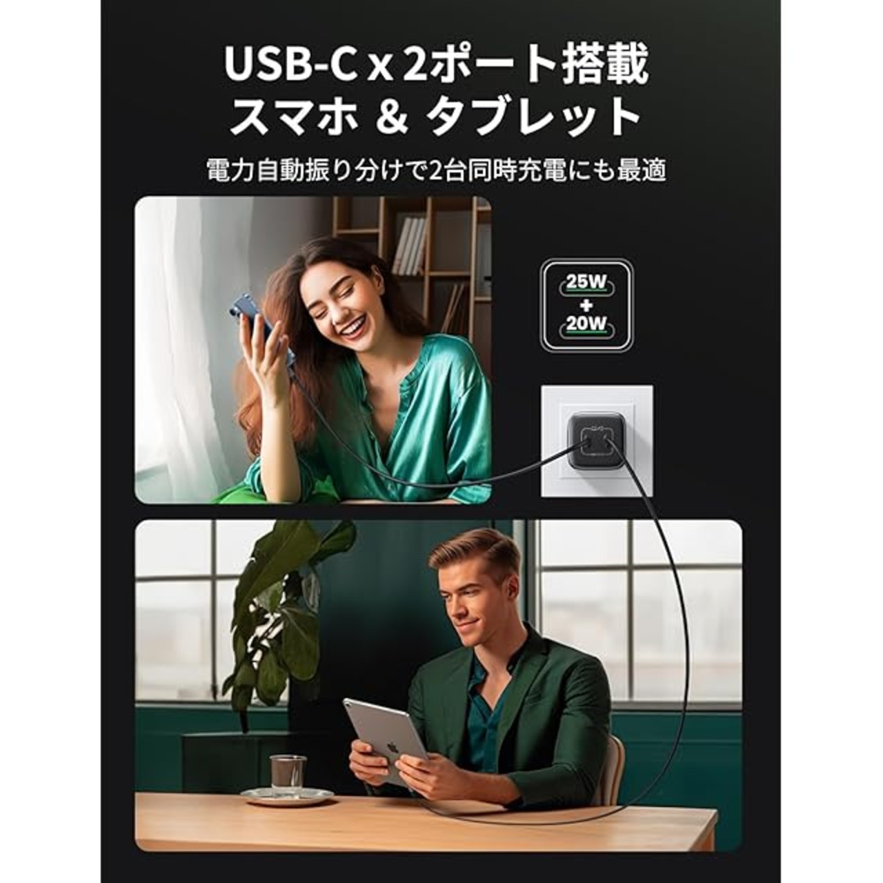 UGREEN 45W GaN充電器 2*USB-Cポート