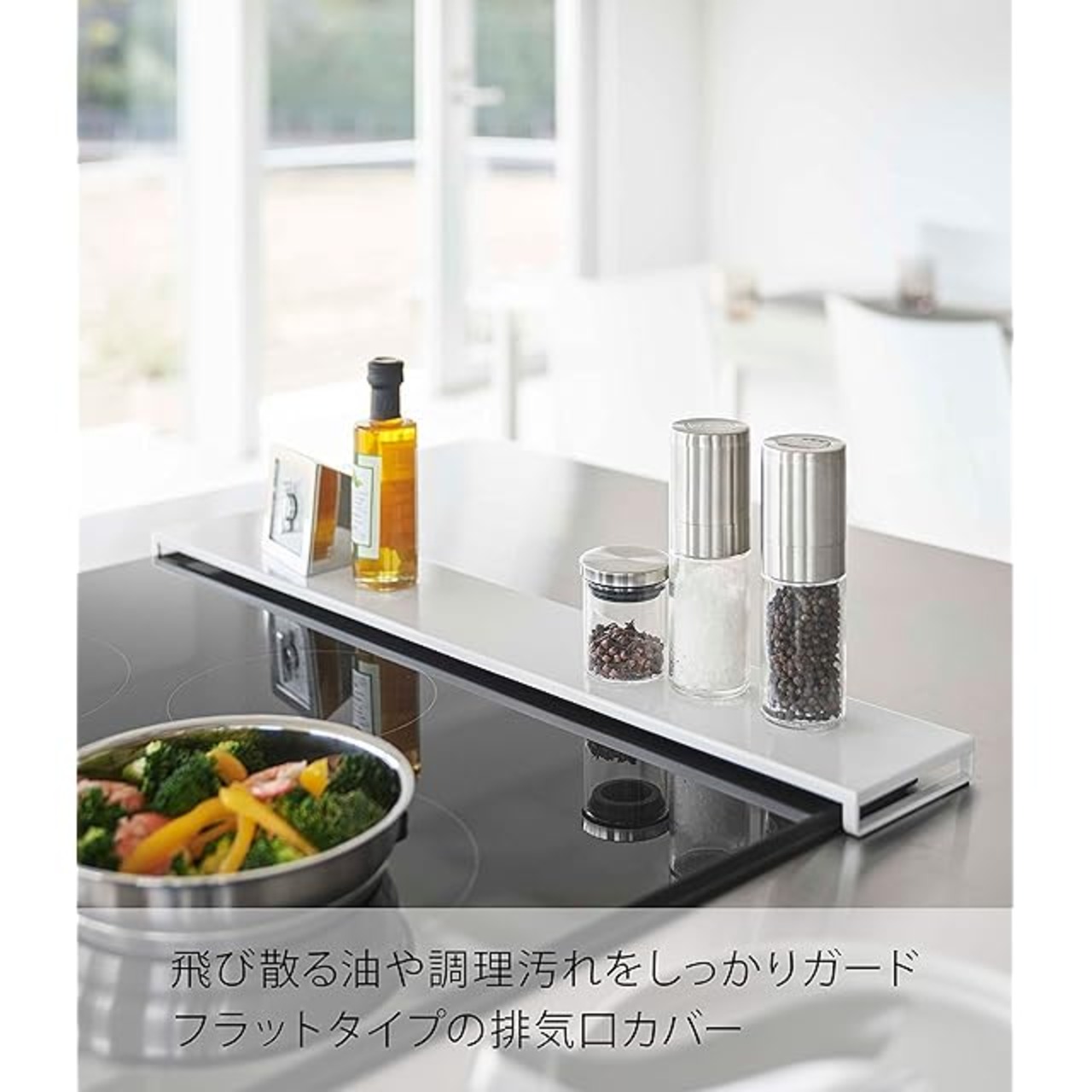 商品名:山崎実業(Yamazaki) 排気口カバー フラットタイプ W60 ホワイト 約W63XD10XH2.5cm タワー tower 薄型 油はねガード お手入れ簡単 5734