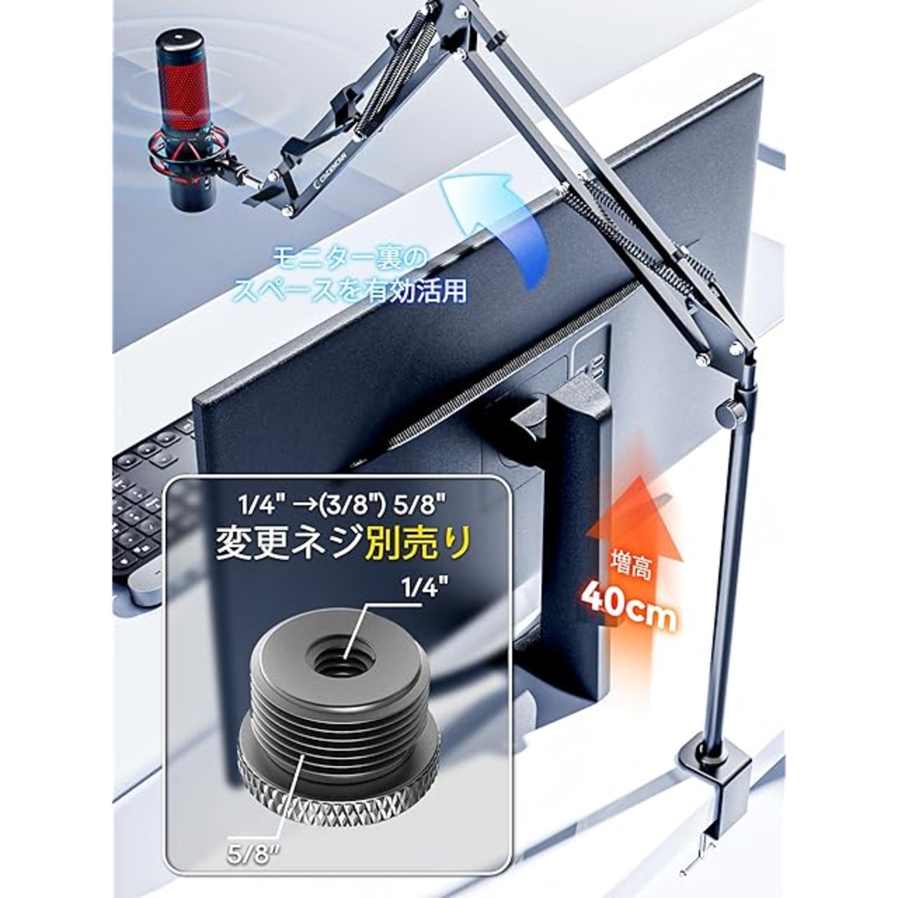 商品名:CACENCAN M03 カメラアーム カメラスタンド アーム 俯瞰撮影 スマホスタンド 手元撮影 ウェブカメラスタンド 360度回転 延長アーム 卓上デスク クランプ式 1/4ネジ・スマホホルダー付き 自由雲台 高くなる改良型 料理/絵画/手芸/授業/美容化粧/LIVE生放送/物撮り/web会議 YouTube Tiktok 動画撮影に適用 黒色