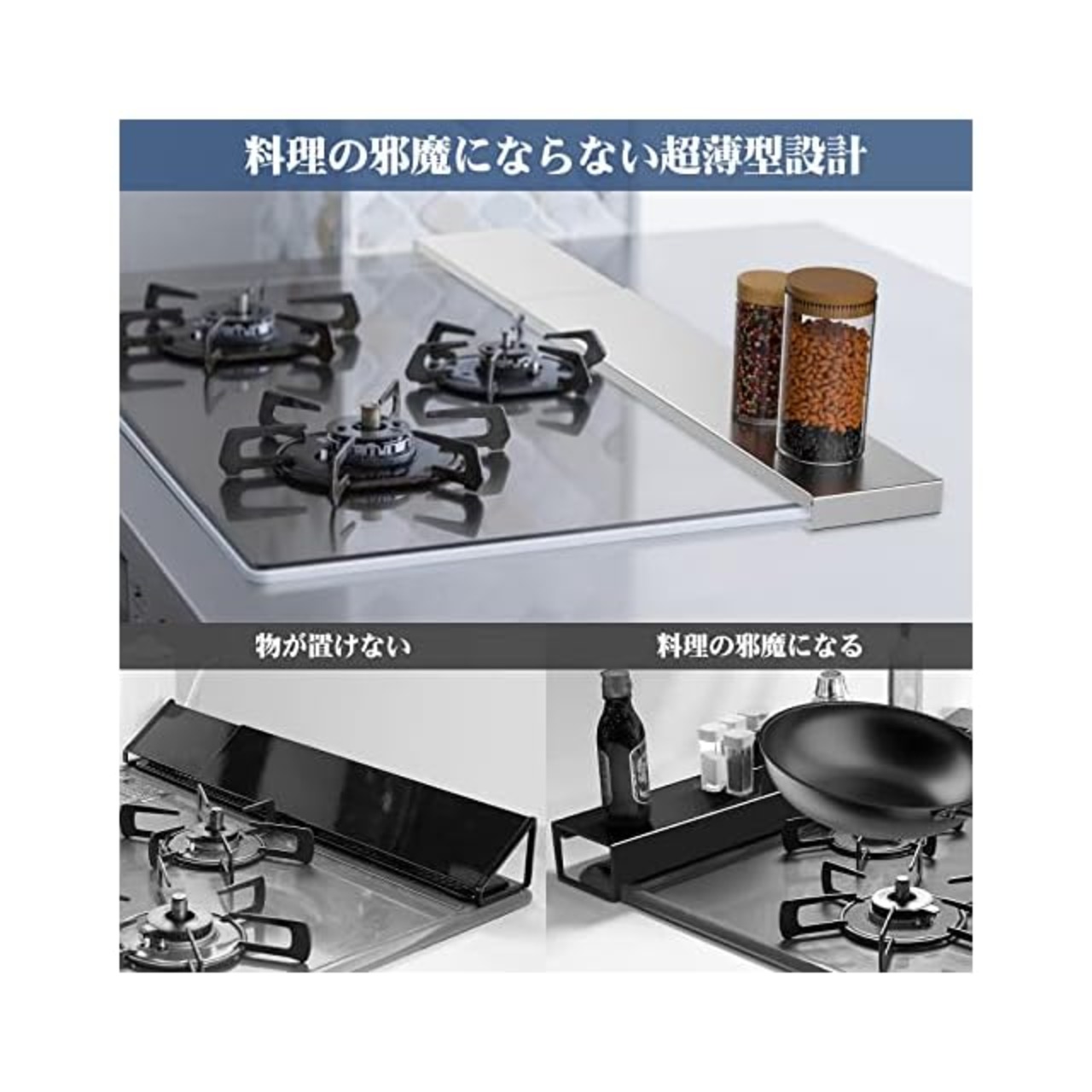 【お手入れ簡単】布で簡単に拭いたり、水で直接すすいだりできるので、毎日の面倒な掃除作業が減ります。ガスコンロ カバー サイズ:43.5-80*10*2.5cm、耐熱: 約200℃、重量:676g(本体)、IHコンロ・ガスコンロ両方対応。