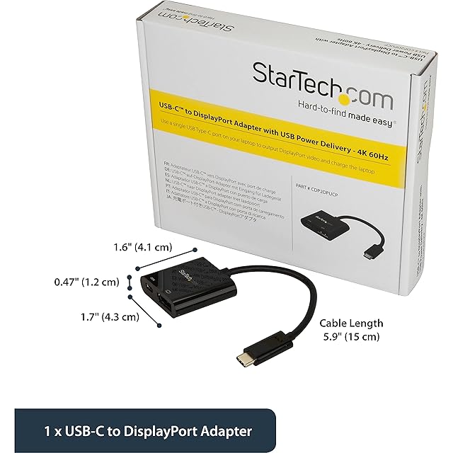 商品名:StarTech.com USB-C - DisplayPort 1.2変換アダプタ/USB Power Delivery対応/4K60Hz/60Wパススルー充電/USBタイプC - DP Altモード/ディスプレイアダプタ/Thunderbolt 3互換 CDP2DPUCP