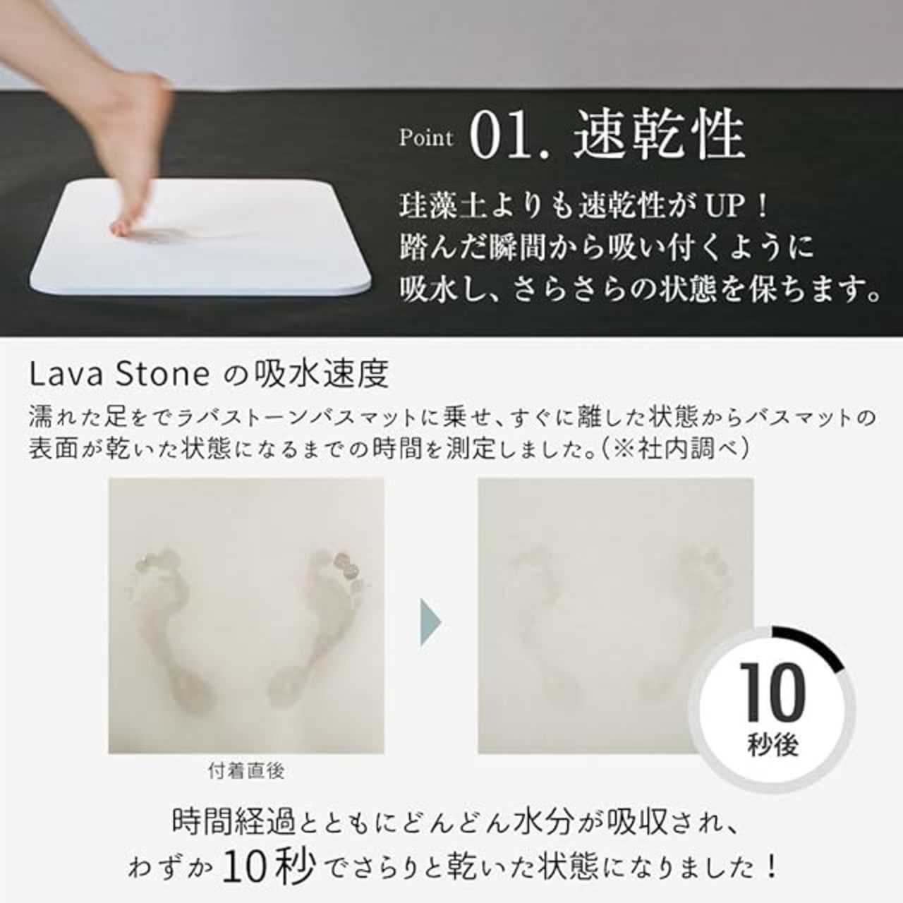 アンドエヌイー(&NE) 溶岩石 バスマット コンパクト ハード ラバストーン Mサイズ 溶岩石バスマット 珪藻土 に代わる新素材 マット 吸水 速乾 抗菌 防臭 火山岩 おしゃれ シンプル 足裏 吸収 無地 フラット 珪藻土 ホワイト NEO-210-WH