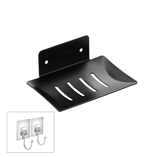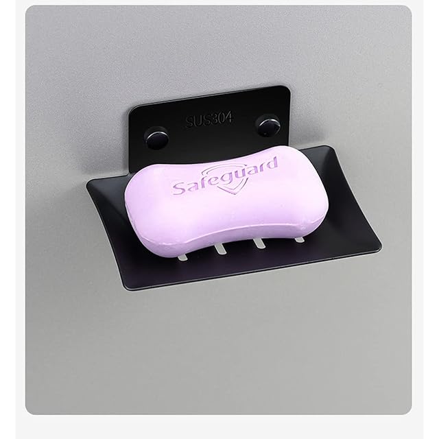 MEISHIBANG ソープ ホルダー ディッシュ ウォール マウント ステンレス スチール 石鹸 皿 ラック セルフ 接着 バスルーム 用 S サイズ ブラック
