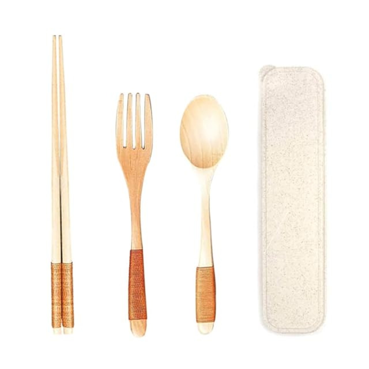 商品名:箸 スプーン フォーク セット 木製 箸 弁当用 天然木 箸 携帯用 木 スプーン・フォーク お弁当用箸 お弁当用フォーク ケース付き キャンプ用品 スプーン 大人 和風竹制食器 軽量 小さい 携帯便利 子供 学生通勤 通学 学校 学校 遠足 旅行用品 ブラウン
