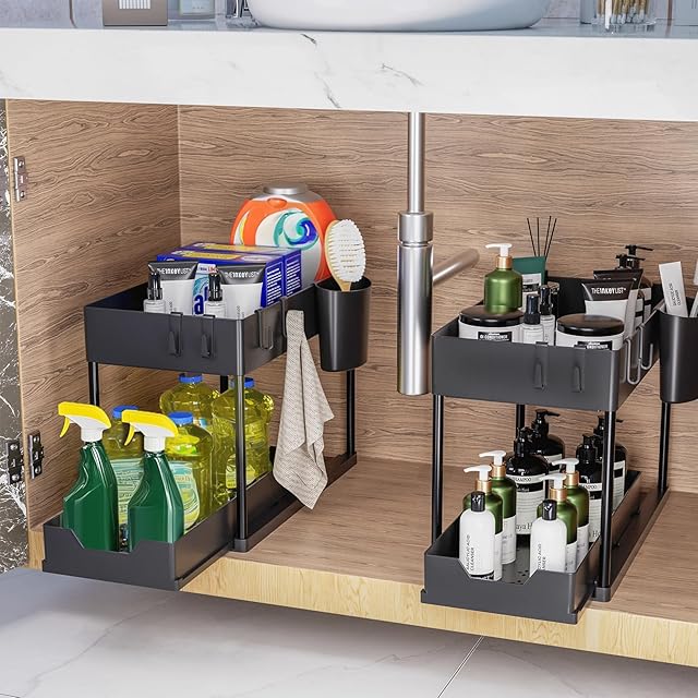Puricon シンク下収納 スライドラック 2段式 可動棚 キッチンラック/コンロ/洗面台下収納ラック 組立簡単 省スペース 横21.8×幅40×高33.5cm(1個)