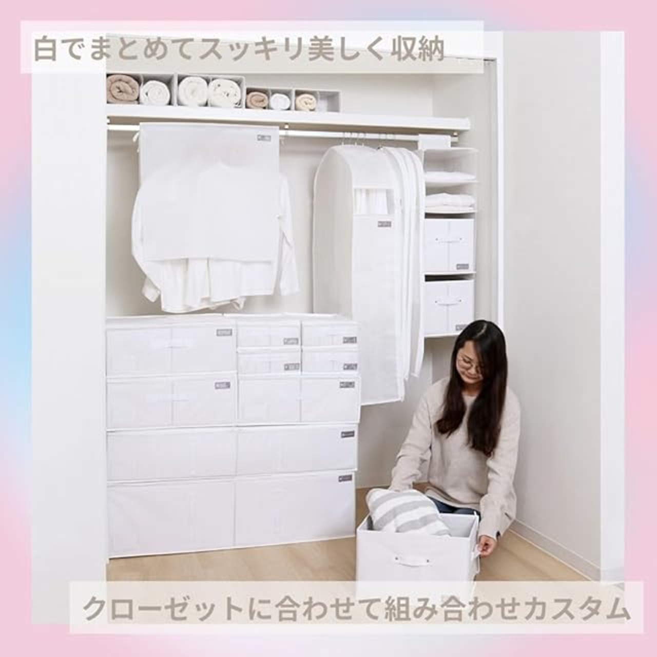 商品名:mayuyam アストロ 収納ボックス ホワイト スリム フタ付き 縦型 隙間 収納ケース 不織布 厚紙入り シンプル 防塵 860-20