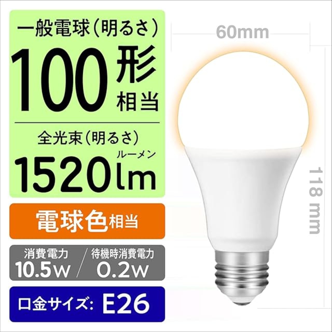 全光束(ランプ単体の明るさ):電球100形相当 1520 lm 、高輝度、約30%省エネ
