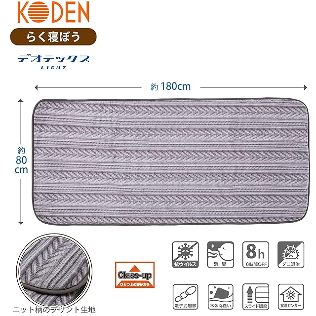 商品名:広電(KODEN) ホットマット らく寝ぼう グレイ フランネル 180×80cm 洗える 消臭機能 デオテックスライト 抗ウイルス ダニ退治 8hOFF 室温センサー付 スライド温度調節 CWR181G-HV