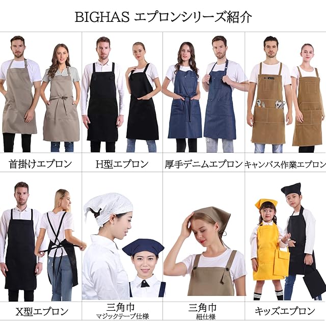 BIGHASブランドのエプロンは軽くて汚れにくい、縮みにくい、ヨレにくい特徴を持つポリエステルと通気性に優れた綿を組み合わせた、エプロンに一番適していると言われるTC素材を使用しております。