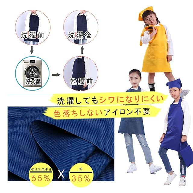 幼稚園、保育園、小学校、学校の行事、料理教室、図工、絵画、陶芸などいろんなシチュエーションに使用できるシンプルかつかわいキッズエプロンです。