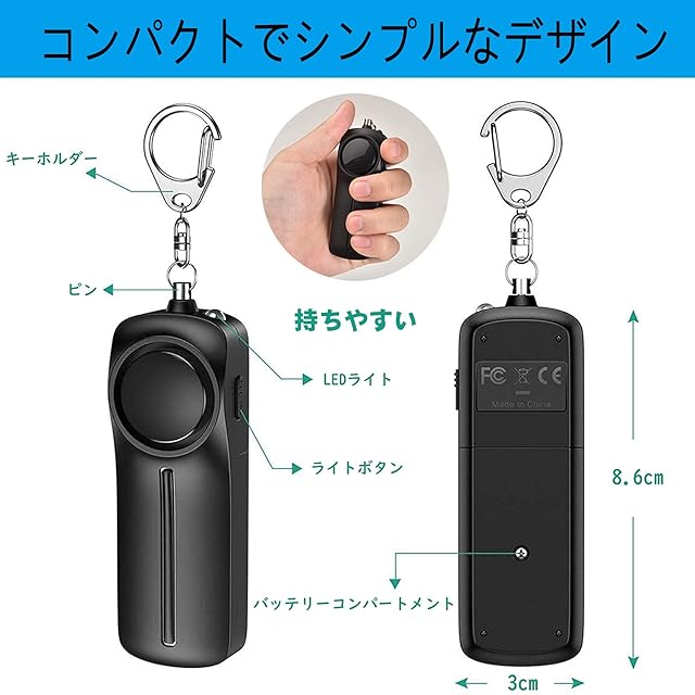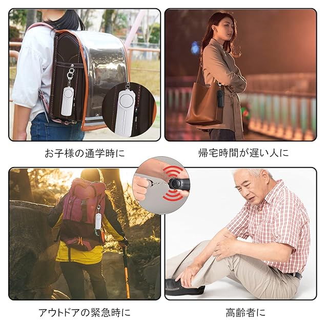 【丈夫で耐衝撃性が高い】割れにくいABS樹脂で作られており、ちょっとした落としたくらいの衝撃では破損しにくくなっています。丈夫さのある防犯ブザーはひったくり防止、ストーカー対策・痴漢撃退などに役たち!使用場所も様々、学校の登下校や職場までの行き帰りだけでなく、旅行、朝ウォーキング、犬の散歩などにも活躍します。