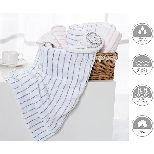 【抜群の吸水性】毛髪の1/100の超極細繊維(マイクロファイバー)の束が毛細血管現象で水分をすばやく吸収、拡散します。吸水した後も方面席が広い極細繊維なので水分蒸発時間が早く、いつでもサラッとした使い心地です。