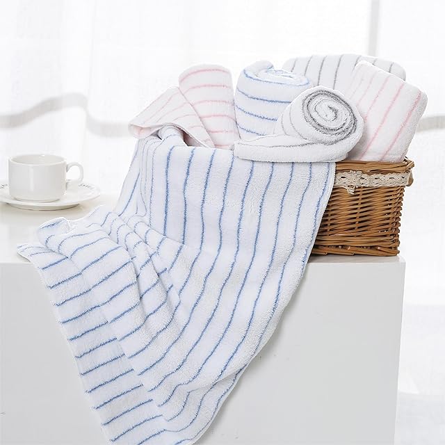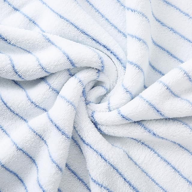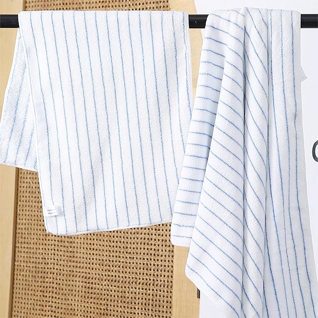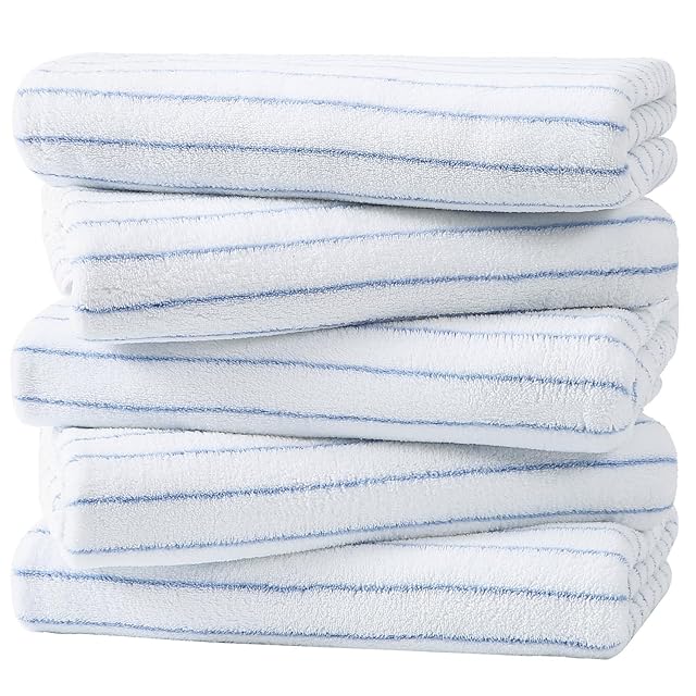 Oseamaid マイクロファイバー ボーダー バスタオル 大判 5枚セット 吸水速乾 ふわふわ 肌触り 抗菌防臭約60×120cm(ブルー)