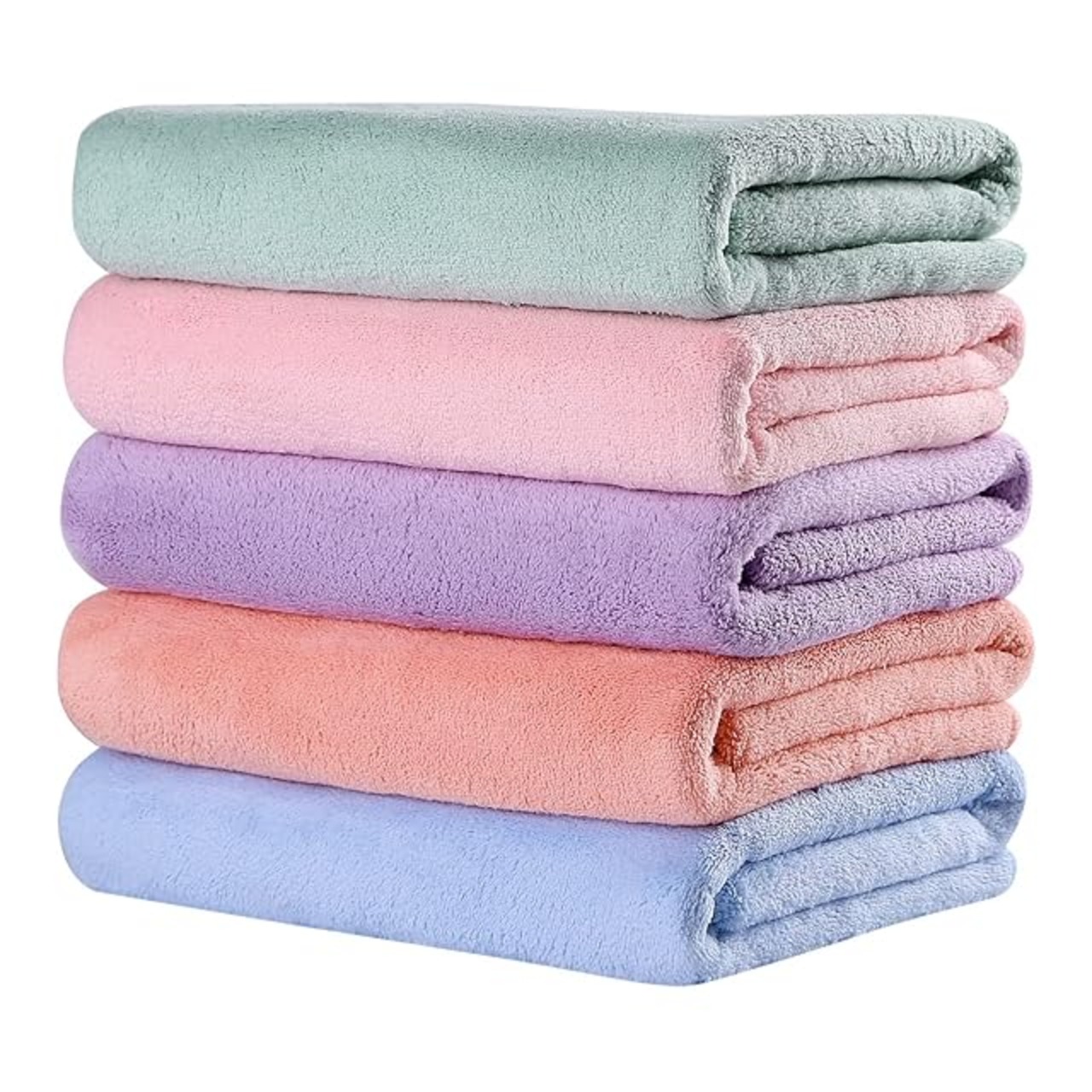 Oseamaidマイクロファイバー バスタオル 大判 5枚セット 吸水速乾 ふわふわ 肌触り 抗菌防臭約60×120cm(ブルーピンクグリーンレッドパープル)