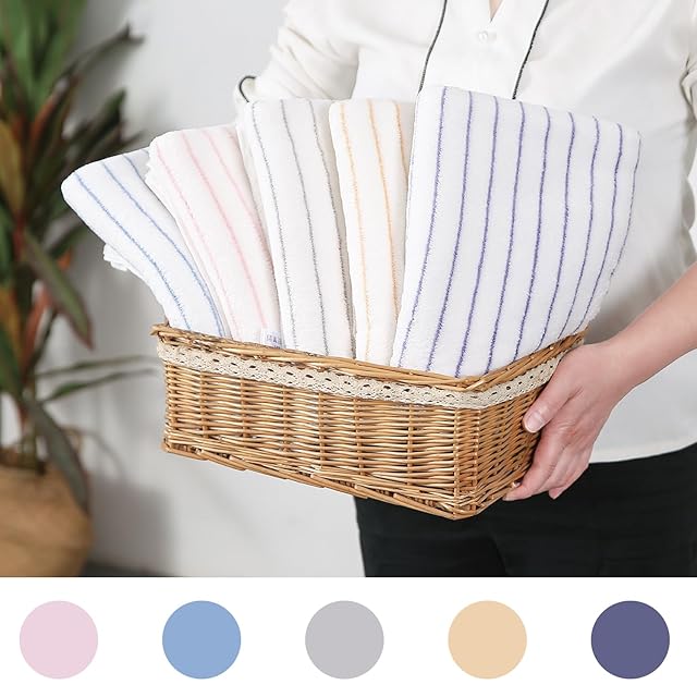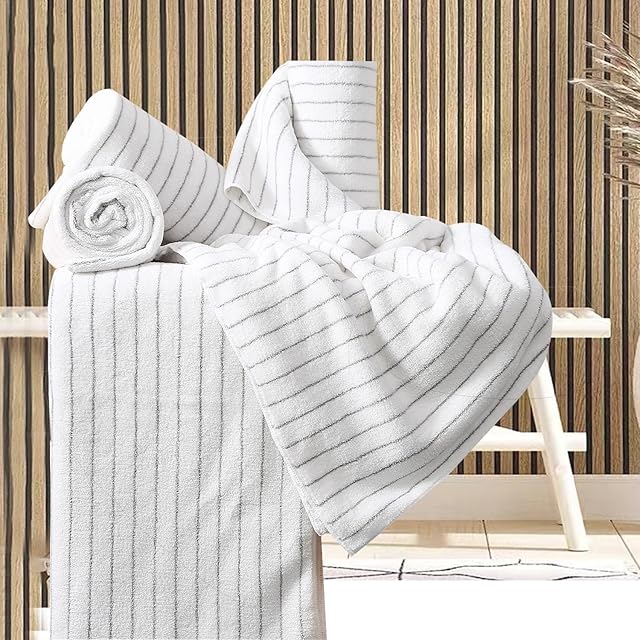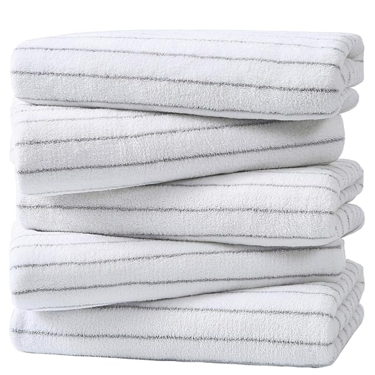 Oseamaid マイクロファイバー ボーダー バスタオル 大判 5枚セット 吸水速乾 ふわふわ 肌触り 抗菌防臭約60×120cm(グレー)