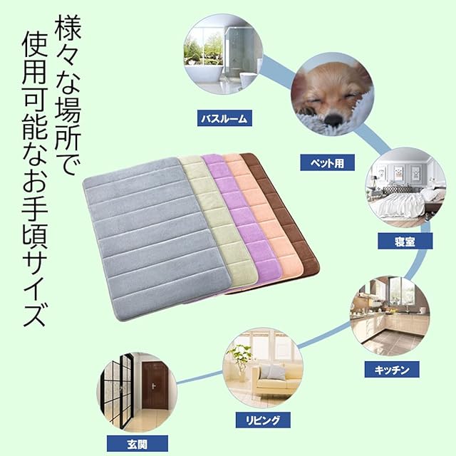 商品名:BossLogy バスマット 風呂マット 低反発 ふわふわ 速乾 吸水 滑り止め付き 丸洗い 洗濯可能 床暖房対応 台所 キッチン お風呂 バスルーム 玄関 ペット用 50×80cm (グレー)