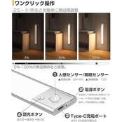 【初心者でも簡単操作】①側面の電源ボタンを1回押すと常時点灯モードに切り替わり、緊急時には懐中電灯としても活躍。発光面の調光・調色ボタンを押すことで3段階の色温度を切り替えられ、無段階調光を希望の場合はボタンを長押ししてください。②再度電源ボタンを短押しすると、インジケーターが緑色に4回点滅し「明暗センサーモード」に。明るい場所では消灯し、暗い環境(寝室・廊下・玄関・押し入れなど)で人の動きを感知すると自動点灯。人が離れた約20秒後に自動消灯します。③もう一度電源ボタンを短押しすると、インジケーターが赤色に1回点滅し消灯します。用途に合わせてモードを自由に切り替え可能です。