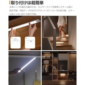 【工事不要・取付簡単・幅広い互換性】配線工事不要の為、取付場所が限定されず、付属した鉄板や3Mテープにてキャビネット、ベッドの下や壁等に貼り付けることができます。充電や位置交換が必要な場合は、簡単に外せます。この多機能人感センサーライトは寝室、押し入れ、戸棚、廊下、職場、地下室、ガレージ、階段井戸などに適用されます。