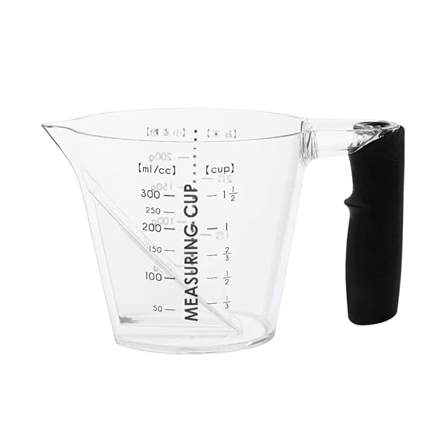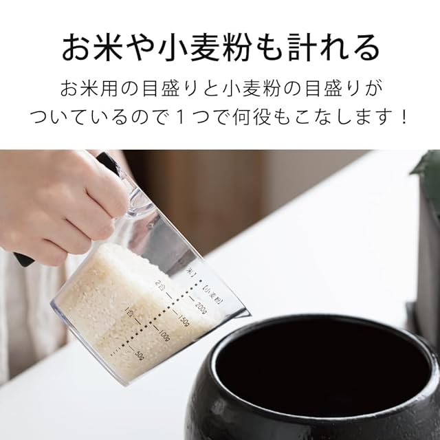 また、電子レンジ・食洗機対応。小麦粉やお米も計量可能でとっても機能的。500mlと使い分けできる小さめの300ml。
