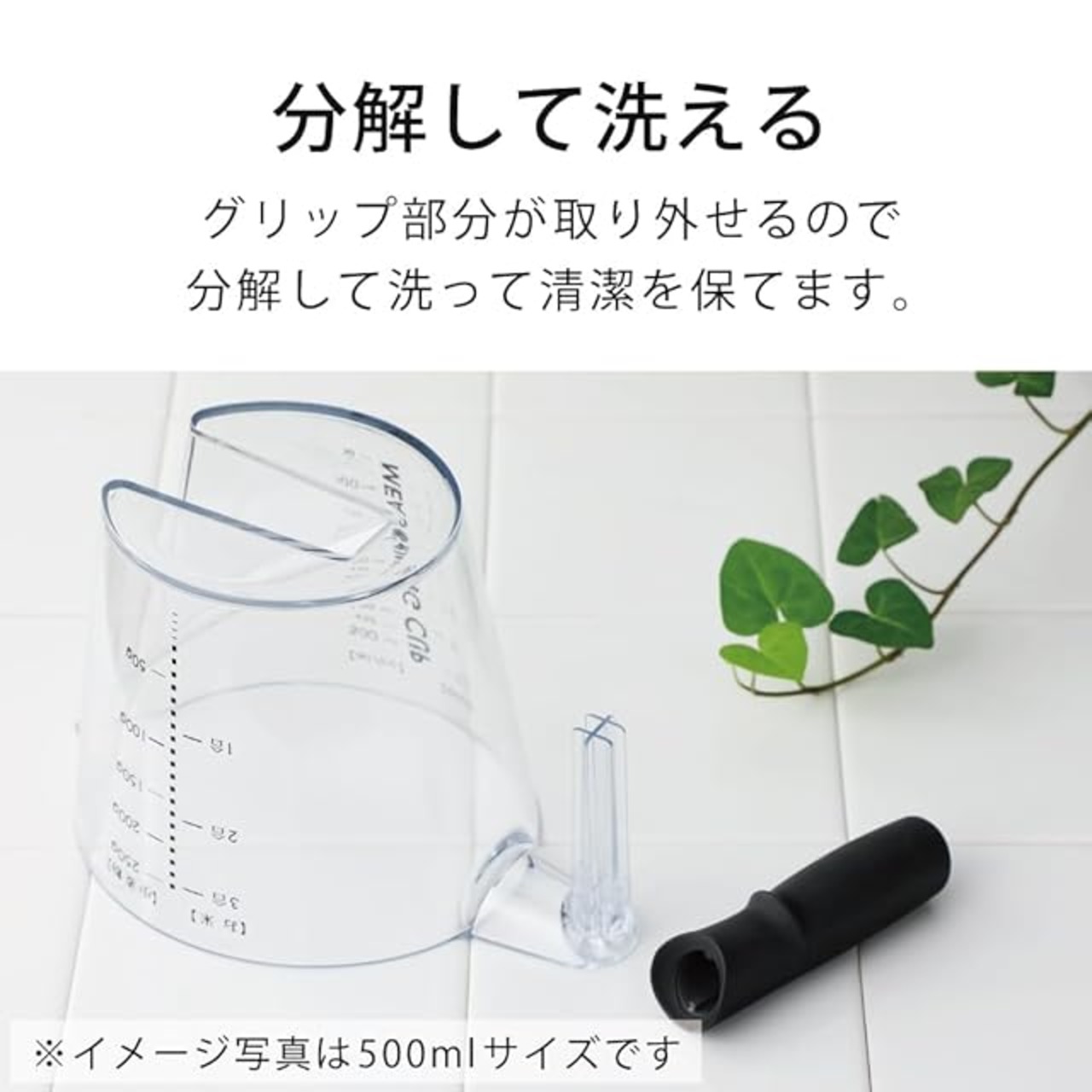 カップ内部にメモリがあるので、注ぎながら上から覗いて計量できます! 左利きの方も使いやすいデザイン♪
