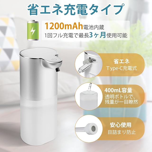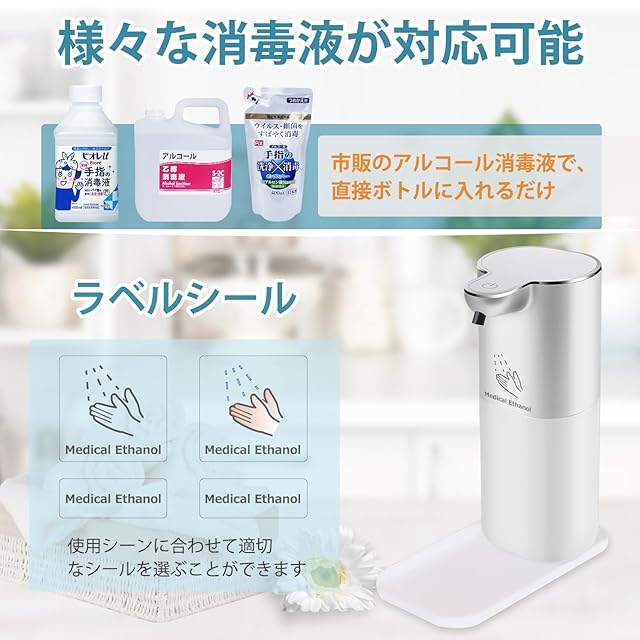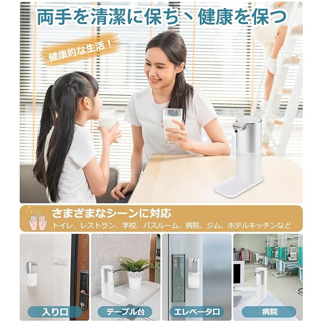 「自動ソープディスペンサー」。赤外線センサ技術を採用し、手をかざすと赤外線センサーが感知して適量のソープが自動的に出てきます。操作簡単、使用便利。汚れた手で直接ポンプに触る必要がないため、衛生的で、周りが汚れにくいです。非接触式で二回目感染を避けて、ウイルス予防の対策です。