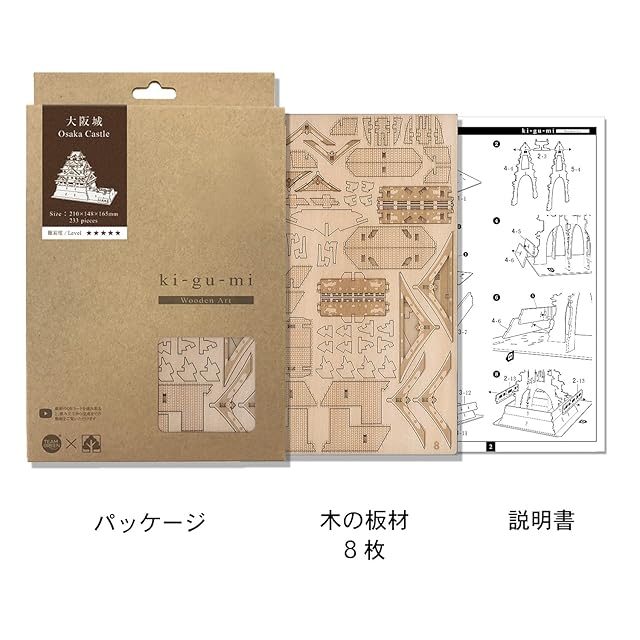 商品名:ki-gu-mi 大阪城 - 小学生 から 大人 まで 楽しめる 木製 3D 立体パズル DIY 工作キット - 男の子 女の子 の 知育玩具 - 立体アート として 大人の プレゼント にも最適