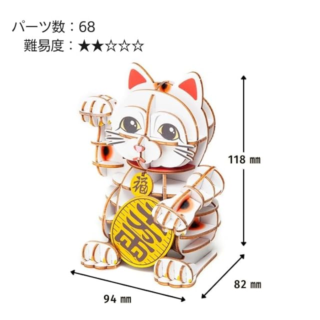 商品名:ki-gu-mi 招き猫 - 小学生 から 大人 まで 楽しめる 木製 3D 立体パズル DIY 工作キット - 男の子 女の子 の 知育玩具 - 立体アート として 大人の プレゼント にも最適な ウッドパズル