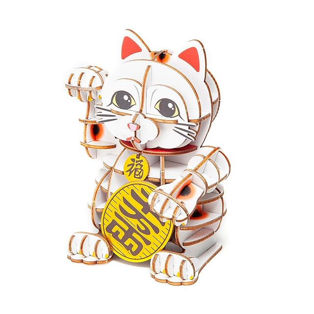 ki-gu-mi 招き猫 - 小学生 から 大人 まで 楽しめる 木製 3D 立体パズル DIY 工作キット - 男の子 女の子 の 知育玩具 - 立体アート として 大人の プレゼント にも最適な ウッドパズル