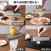 【かんたん多用途】軽い力で食材を往復するだけでおろせます。ハードチーズ、レモンや柑橘類の皮、、繊維のある生姜や、にんにく、チョコレートなど色々な料理に使えます。