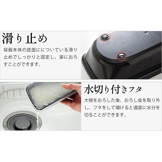 セット内容:おろし金 × 1・容器本体(滑り止め付) × 1・容器蓋 × 2