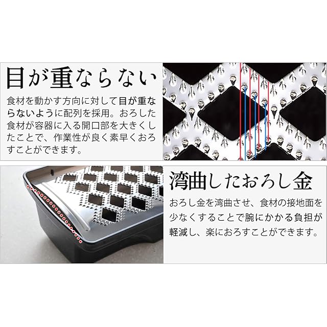 材質:おろし金/ステンレス鋼・本体/ABS樹脂(耐熱温度:80度)・容器本体と蓋/AS樹脂(耐熱温度:80度)・滑り止め/ポリウレタン
