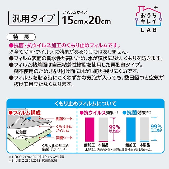 商品名:レック お風呂用 鏡がくもらないフィルム 15×20cm B00447