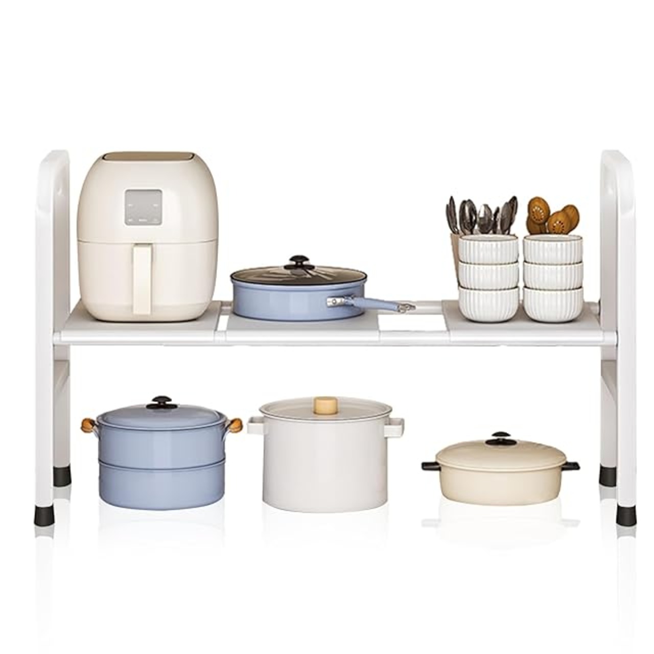商品名:キッチン シンク下 収納ラック シンク下伸縮棚 洗面台下 収納棚 横幅50-80cm調整 シンク下フリーラック ワイド 排水管回避対応 スペース節約 簡単組立て (棚板3枚 1段 ホワイト)